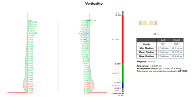 Análisis de verticalidad, redondez y asentamiento de Tanques Atmosféricos (API 653)